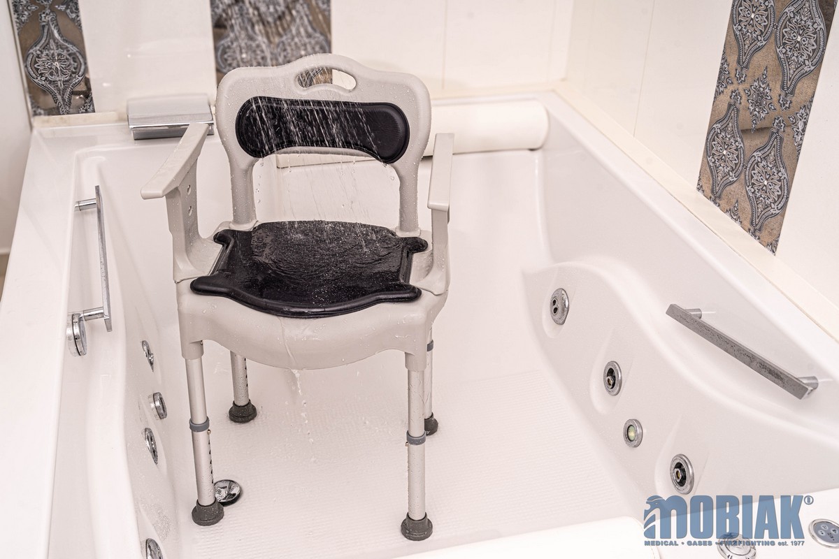 Tuširno toaletni stol je stol z dvema funkcijama; ker je opremljen s sanitarno posodo se lahko uporablja kot toaletni stol ali pa kot stol za tuširanje. Nastavljiv je po višini. Naslonjala za roke in naslonjalo za hrbet so odstranljivi, tako da stol lahko prilagodite svojim potrebam. Primeren je tudi za uporabo nad standardno WC školjko.