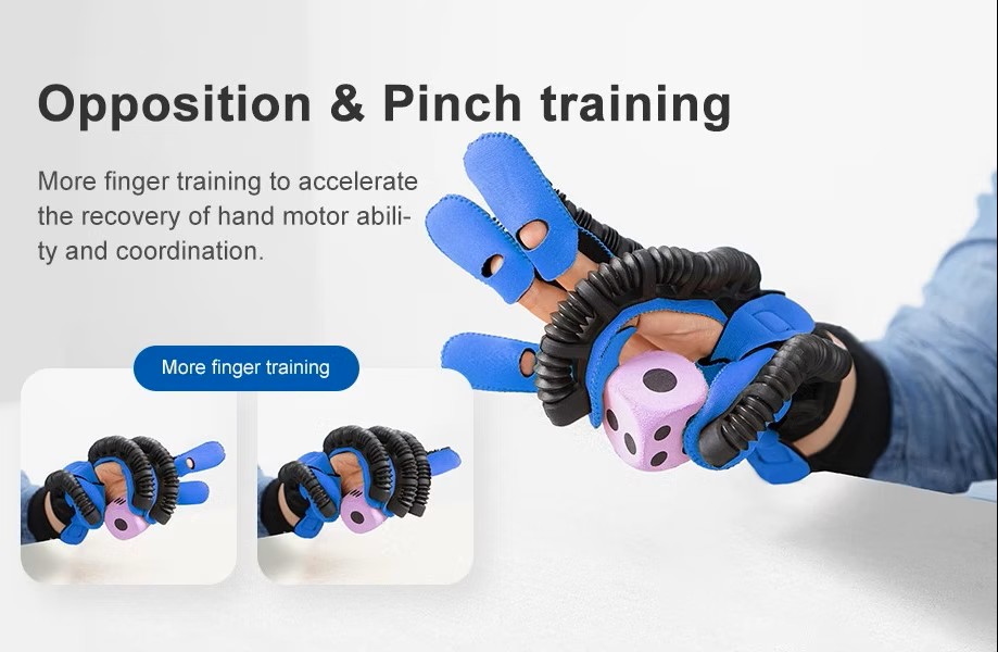 Naprava pomaga bolnikom izvajati upogibanje in iztegovanje prstov, zmanjšuje mišično napetost, lajša edeme in okorelost ter s sočasno vadbo spodbuja rehabilitacijo poškodb možganskih živcev. Domača naprava z rokavicami za rehabilitacijo rok Syrebo®SY-HRE12 je majhna in prenosna ter enostavna za uporabo, rehabilitacijske vaje lahko izvajate kjerkoli in kadarkoli.