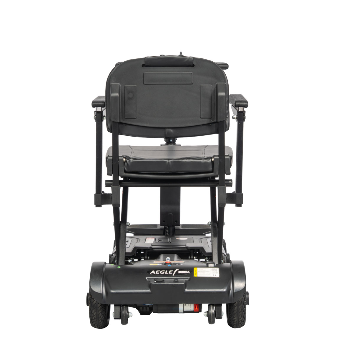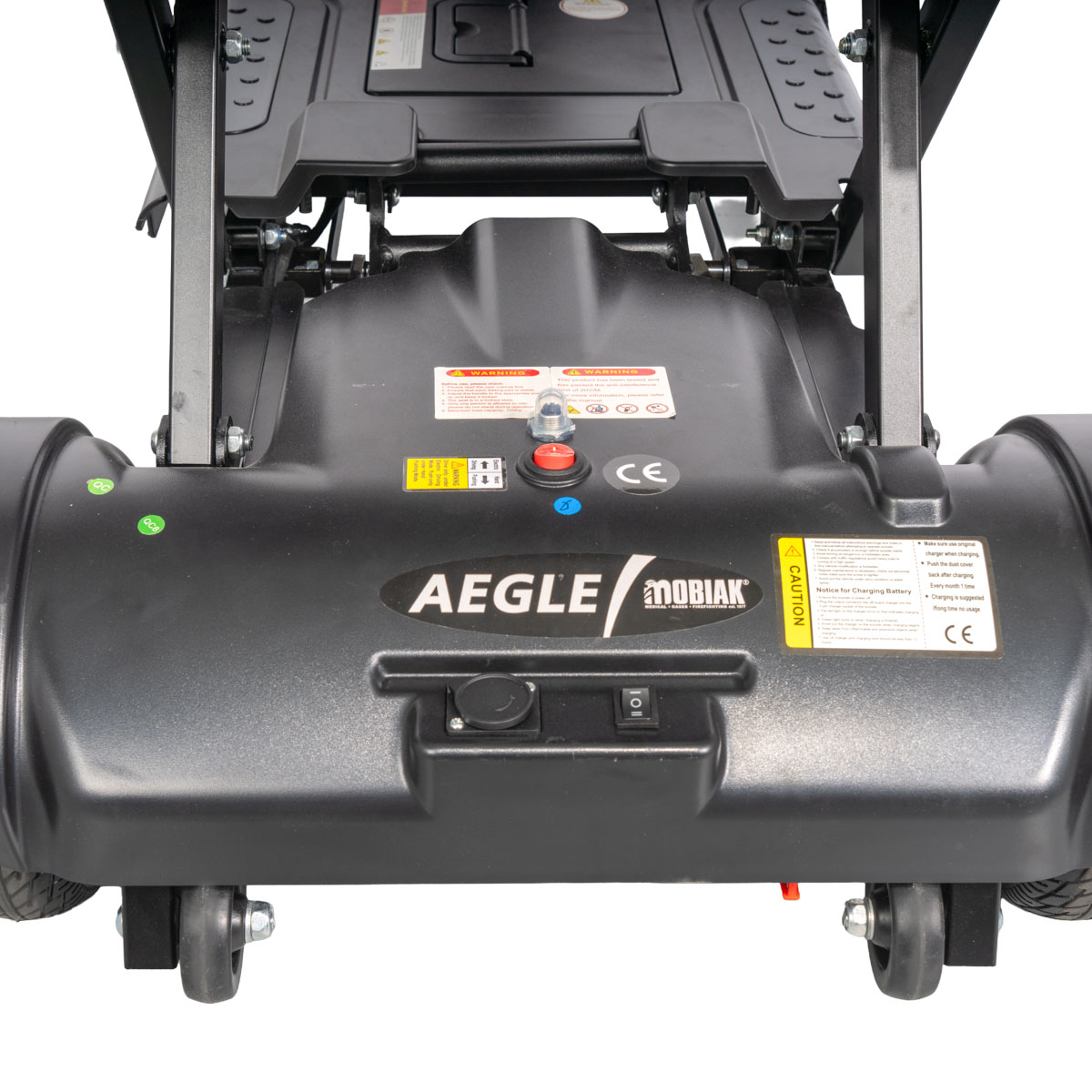 Zložljiv električni skuter AEGLE je idealna rešitev za uporabnike z omejeno mobilnostjo, ki si želijo svobodo, udobje in preprosto uporabo v vsakdanjem življenju. Skuter je primeren za uporabo tako v notranjih prostorih kot na asfaltiranih zunanjih površinah ali urejenih poteh, njegova velika prednost pa je izjemno preprosto zlaganje s pritiskom na gumb daljinskega upravljalnika ali pa s pritiskom na gumb na ohišju skuterja.