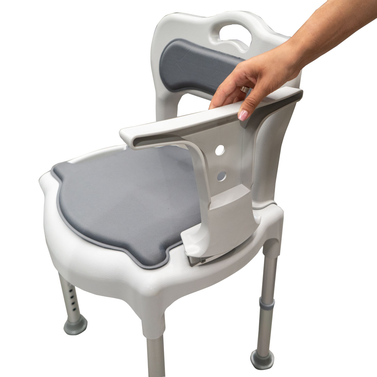 Tuširno toaletni stol je stol z dvema funkcijama; ker je opremljen s sanitarno posodo se lahko uporablja kot toaletni stol ali pa kot stol za tuširanje. Nastavljiv je po višini. Naslonjala za roke in naslonjalo za hrbet so odstranljivi, tako da stol lahko prilagodite svojim potrebam. Primeren je tudi za uporabo nad standardno WC školjko.
