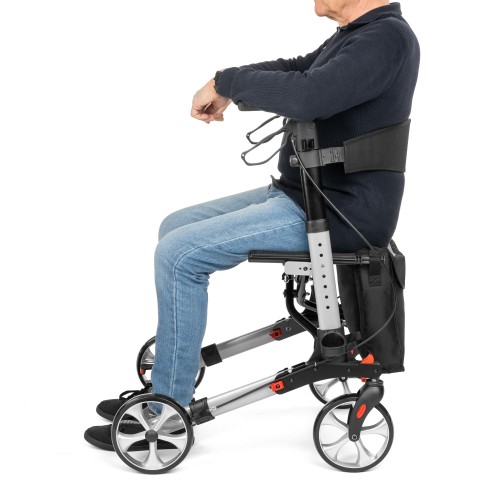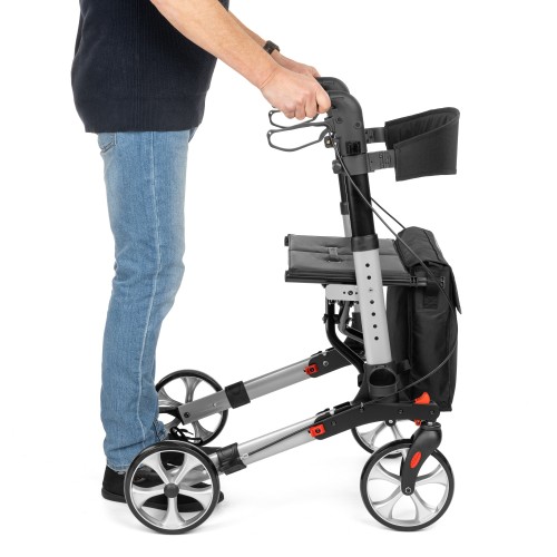 Rolator se zloži na majhne dimenzije (ročaji se nizko spustijo, kolesa se poklopijo navzgor, okvir se zloži s pomočjo prečnega križa), kar olajša transport. Ker ga je preprosto vzeti s seboj na pot, je odlična izbira za aktivnejše posameznike. Primeren je za uporabo notri in zunaj, saj je opremljen z velikimi kolesi, ki se bolje oprijemajo površine, kot pri podobnih rolatorjih.