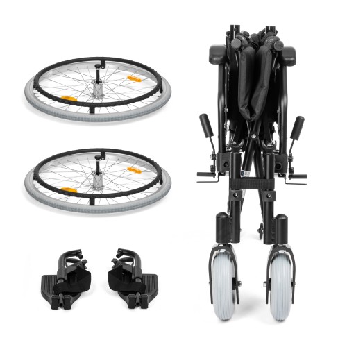 ELEKTRIČNI INVALIDSKI VOZIČEK ima sistem s prilagodljivim sedežem, ročno nastavljiv kot nagiba sedeža in prilagoditev naslonjala ter nastavljiva napetost oblazinjenja.