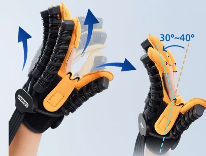 Naprava pomaga bolnikom izvajati upogibanje in iztegovanje prstov, zmanjšuje mišično napetost, lajša edeme in okorelost ter s sočasno vadbo spodbuja rehabilitacijo poškodb možganskih živcev. Domača naprava z rokavicami za rehabilitacijo rok Syrebo®SY-HRC12 je majhna in prenosna ter enostavna za uporabo, rehabilitacijske vaje lahko izvajate kjerkoli in kadarkoli.